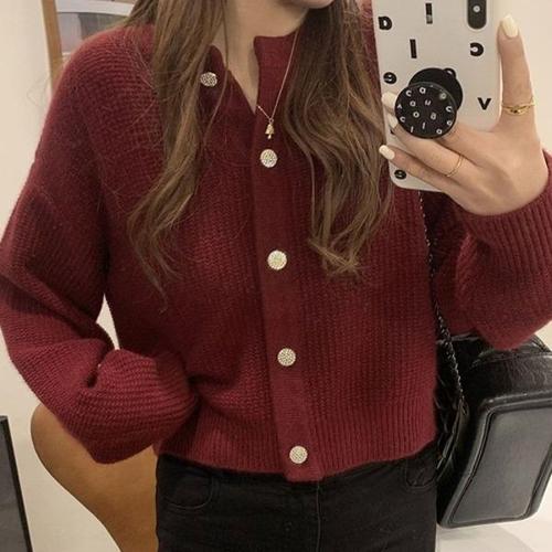 [엄지척]와플패턴 니트 라운드넥 반짝이 단추 여친룩_19800898_667501