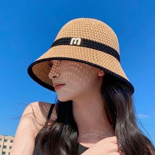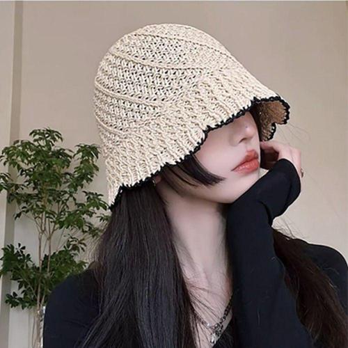 여성 밀짚 버킷햇 왕골 여름 모자 벙거지 WFMAVGI