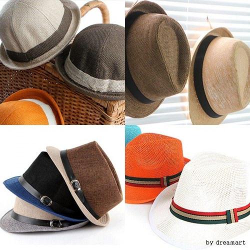왕골 페도라 모자 여름 휴양지 모자 WFMBKUX