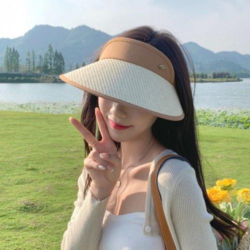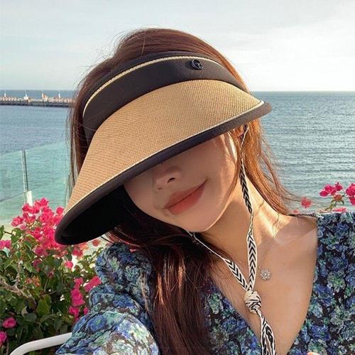 왕골 썬캡 휴가 챙모자 여성 야외 등산캡 WFMB7YQ