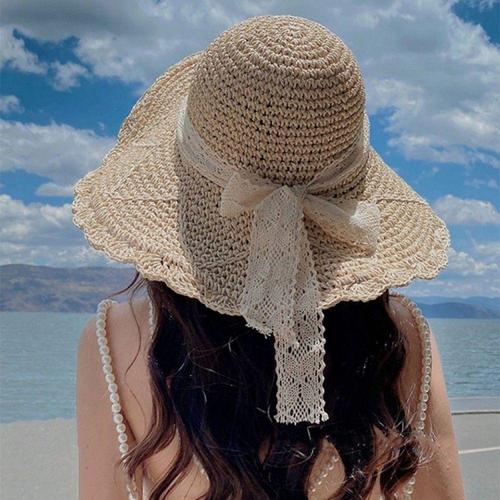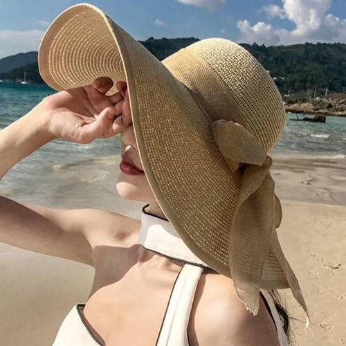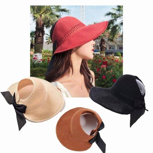 왕골 모자 썬캡 챙리본 여성 휴양지 모자 WFMB7Y0