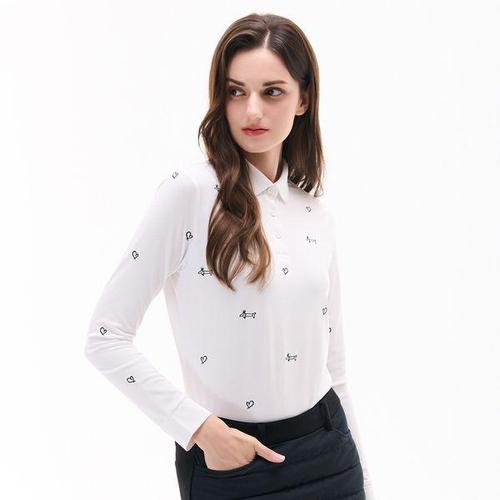 [루이까스텔]여성 왕관 꼬마 닥스훈트 전판 자수 긴팔 카라티