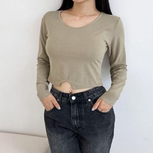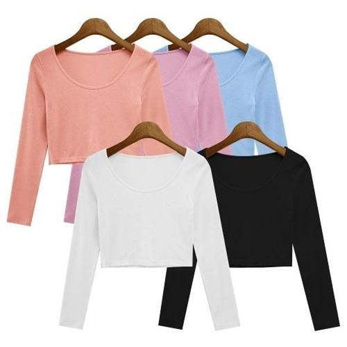 [엄지척]여성 무지 크롭 요가 일상복 운동 스쿱넥 긴팔 티셔츠_19627356_667501