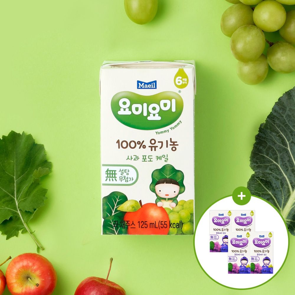 요미요미 유기농 주스 사과포도케일 125ml 24팩+블루베리포도 4팩증정