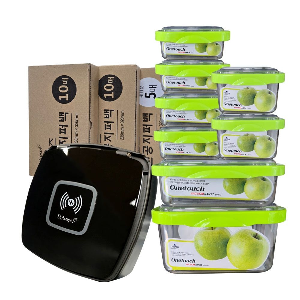냉장고정리 마스터 진공 밀폐용기 8종 풀세트+진공포장기+진공팩 10P