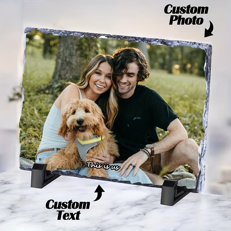 TEMU 1pc 개인화된 사진 로크 보드 프레임 - 디스플레이 스탠드가 있는 맞춤형 슬레이트 사진 프레임, 추수 감사절, 어머니의 날, 아버지의 날, 결혼식, 생일, 크리스마스, 기념일, 손수작업, 친구, 가족, 결혼식 장식용 선물