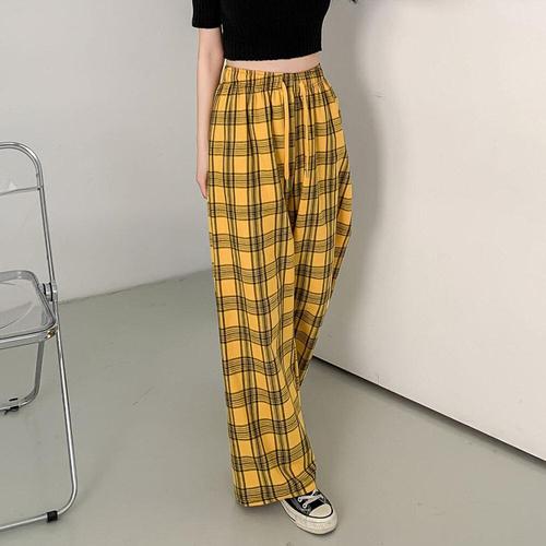 [다잇템]여자 와이드핏 우정룩 롱 타탄체크 고무줄 바지