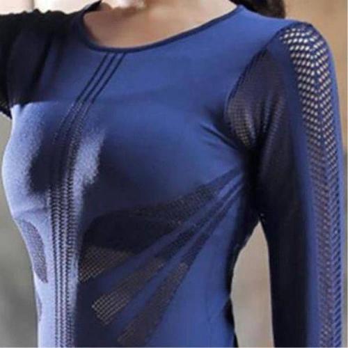 [셀러허브_여성트랜드패션]네이비 메쉬라인 S 티셔츠 운동복 긴팔 캐주얼스타일