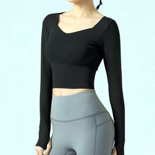 긴팔 운동복 헬스복 요가 티셔츠 스퀘어넥 여자 크롭 WFLQ8B6
