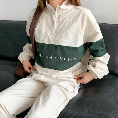[신상오픈런]여성용 나일론 배색 반집업 팬츠와 상의 세트