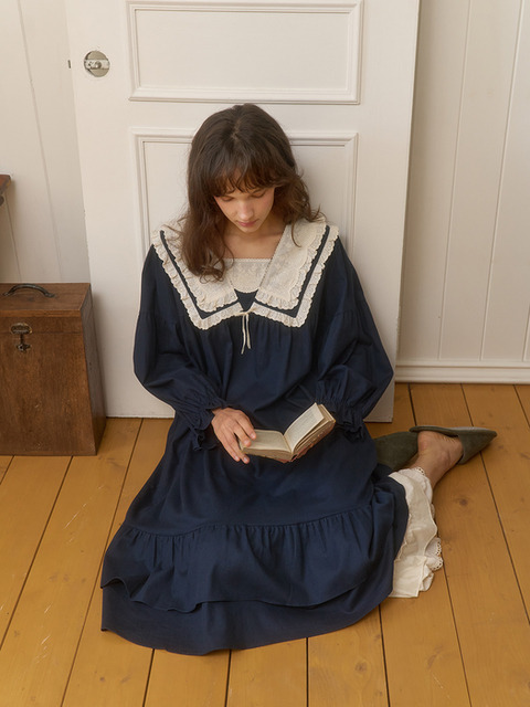 [울랄라파자마] 그레테 긴팔 원피스 네이비 (21수)