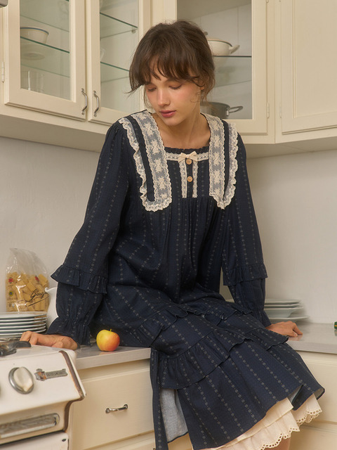 [울랄라파자마] 네쥬 긴팔 원피스 네이비 (21수)