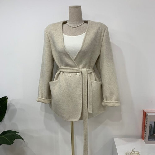 씨샵인더룸 / 우카 울100 핸드메이드 모직 논카라 더블 버튼 트임 허리끈 자켓 3color C