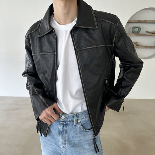 [다잇템][다잇템] 남자 FW 가죽 그런지 박시핏 워싱 집업 자켓_18874386_588872