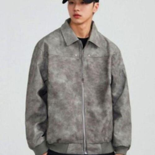 심플룩 남성 트렌디 워싱 라이트 레더 지퍼클로징카라자켓