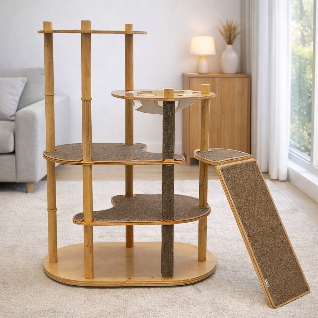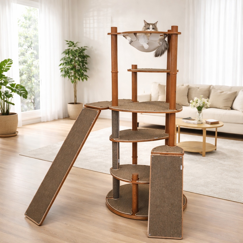 MARTEKLIFES대형 복합형 캣타워 클라이밍 스크래쳐 기둥 캣트리 고양이 집 전만대 캡슐 해먹 스프링보드, 1개, 원목색