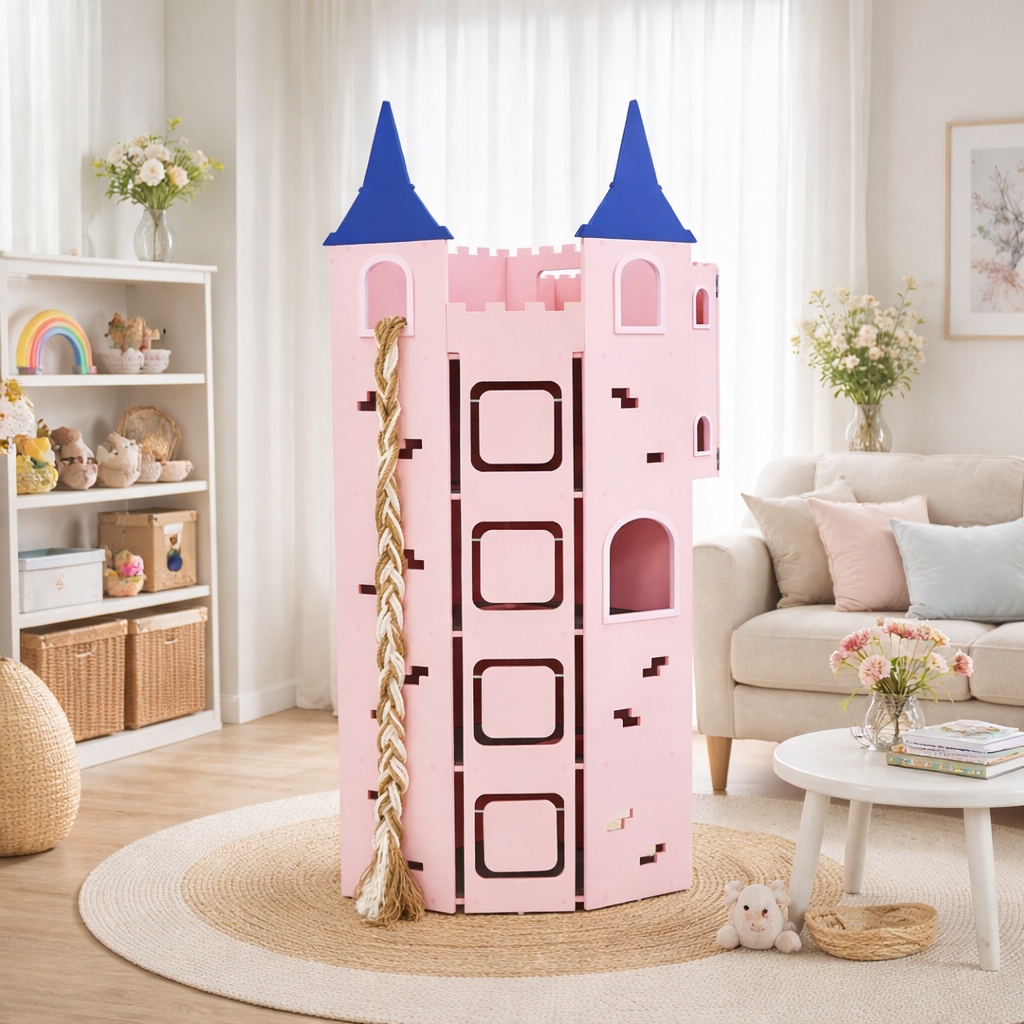 캐슬 냥푼젤 핑크 대형 5단 고양이 코너 캣타워 자작나무 원목 가구