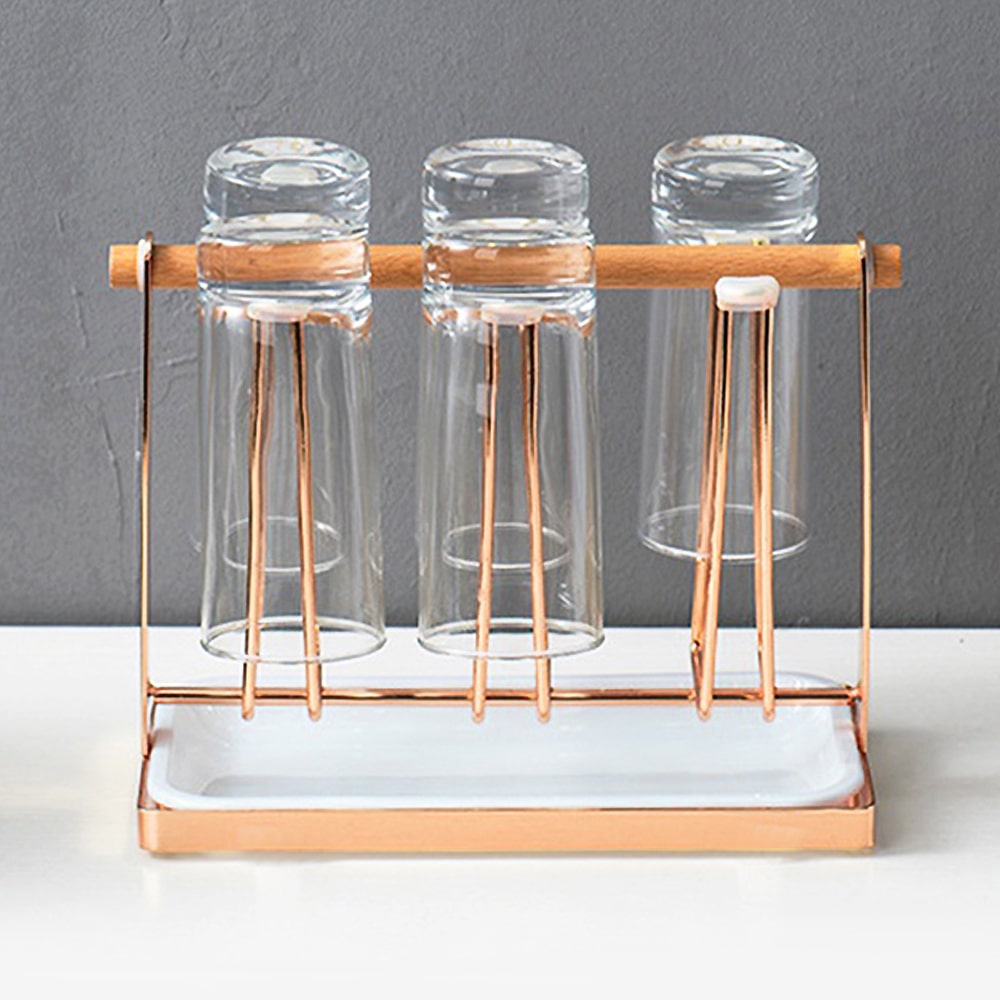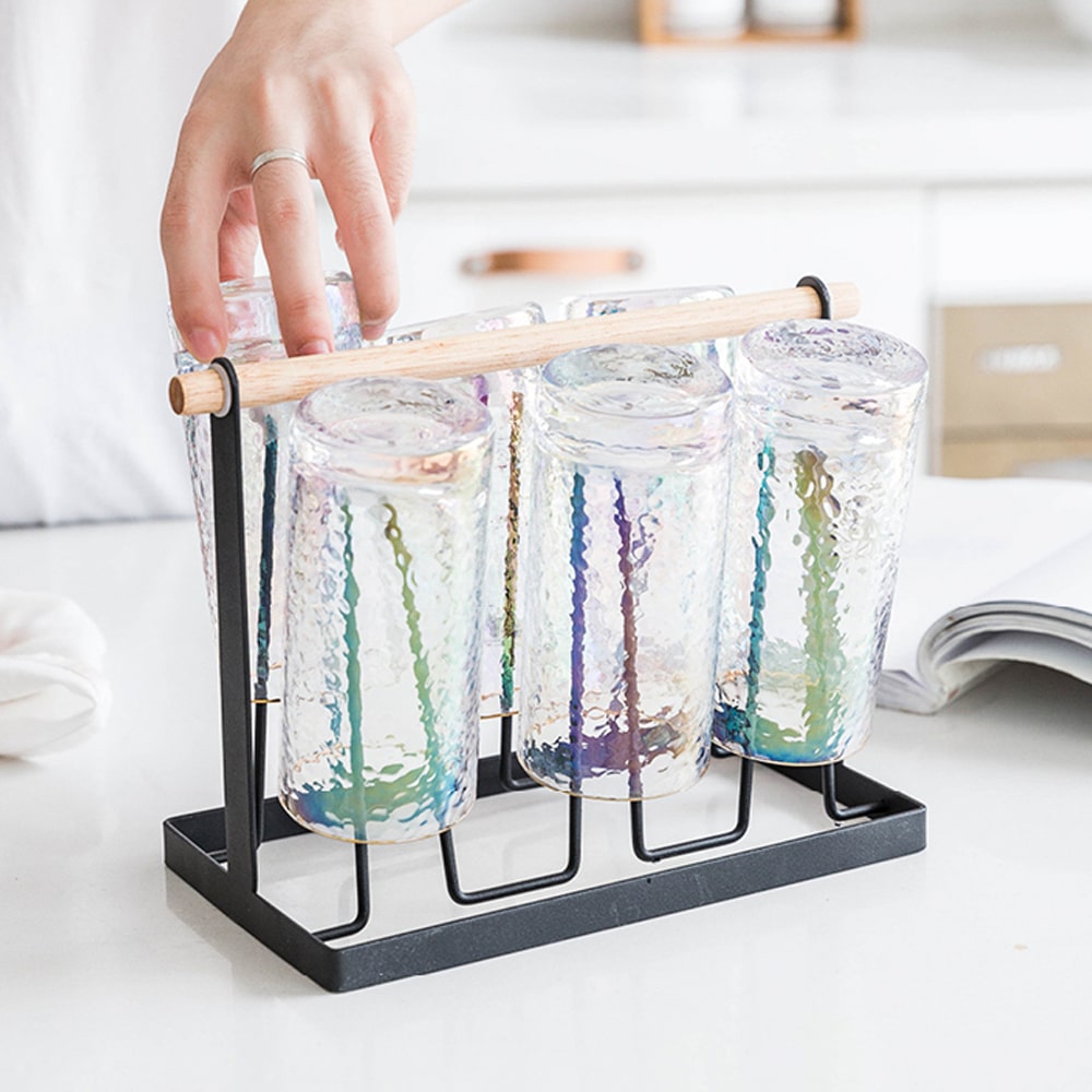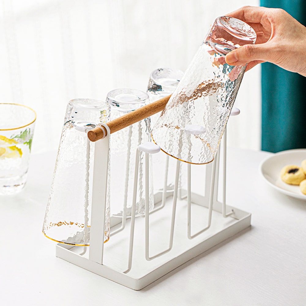 [해외] 내추럴 모던 원목 주방 컵걸이 6구 컵건조대 컵거치대 정리대