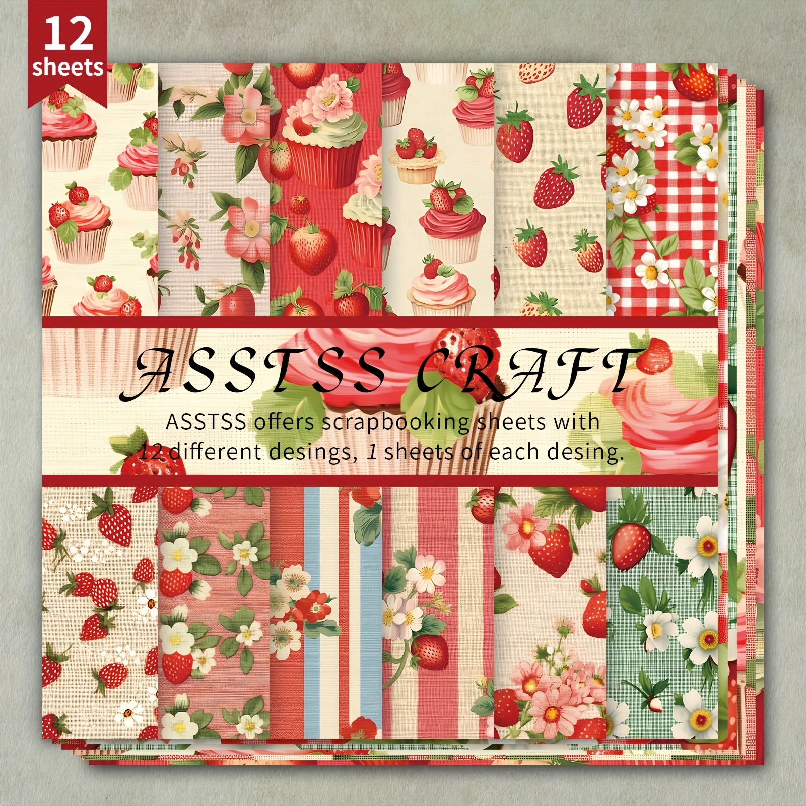 TEMU 12장 스크랩북용 종이 패드, 과일 딸기 배경지 용품, 두꺼운 카드스톡, 불릿 저널링 & 콜라주 아트, 인사말 카드 및 공예용, 6"x6" 플로럴 디자인 팩