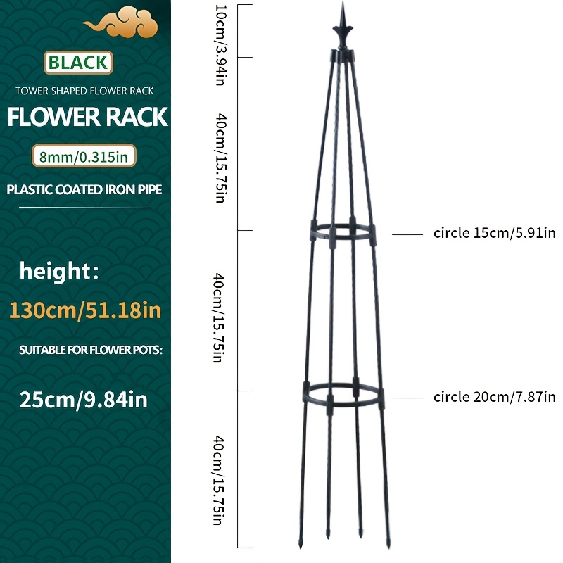 TEMU 4가지 사이즈 선택 가능, 발아 식물용 야외 타워형 꽃 덩굴 덩굴재배대, 덩굴식물용 정원 격자망, 플라스틱 코팅 뾰족한 꽃받침대, 내구성 있는 덩굴식물 스탠드, 실내외 겸용