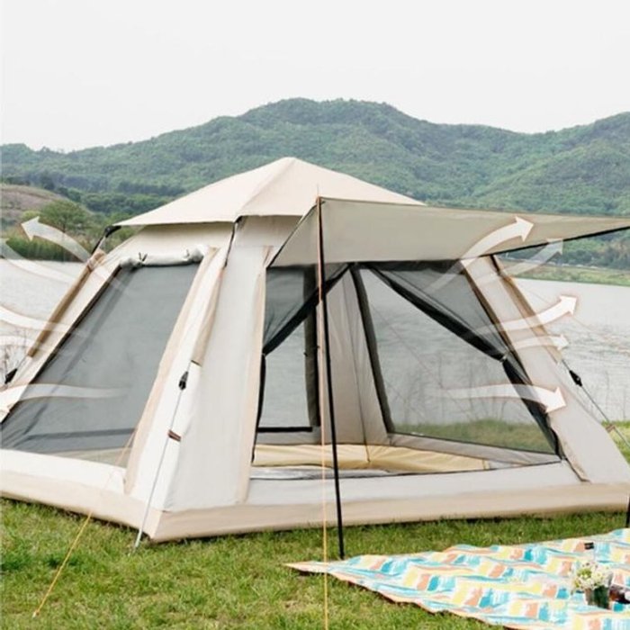 편리한 원터치 5인용 텐트 등산 캠핑 용품 피크닉 간편 휴대용 방충망 방수 기능