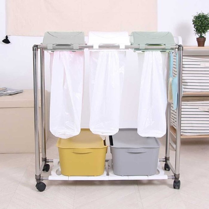 엄지척 이동식 손잡이 원터치 분리수거함2P W