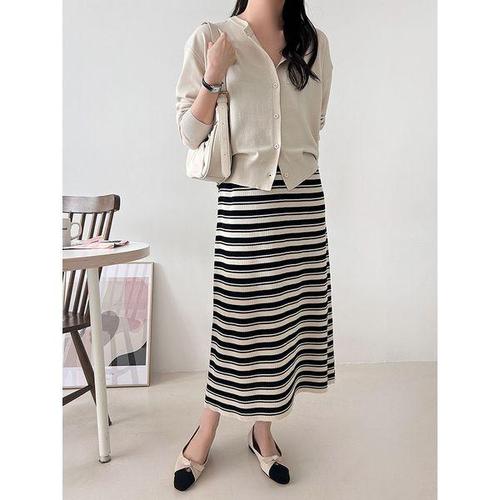 [스타일온미][스타일온미] 셀로나 울 블렌딩 브이 니트 가디건 머플러 스커트 쓰리피스 세트