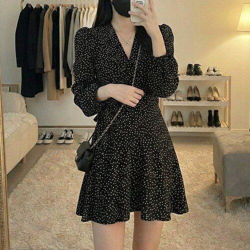 [블로썸스틸]블랙 도트 랩 원피스