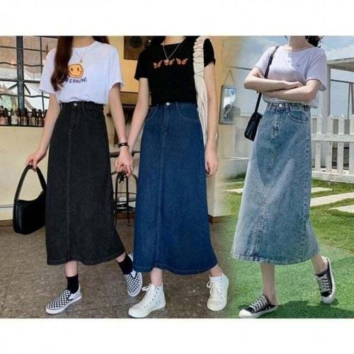 [셀럽하우스]여친룩 ZLGM5928 데일리룩 롱스커트 롱 데님 플레어스커트 청