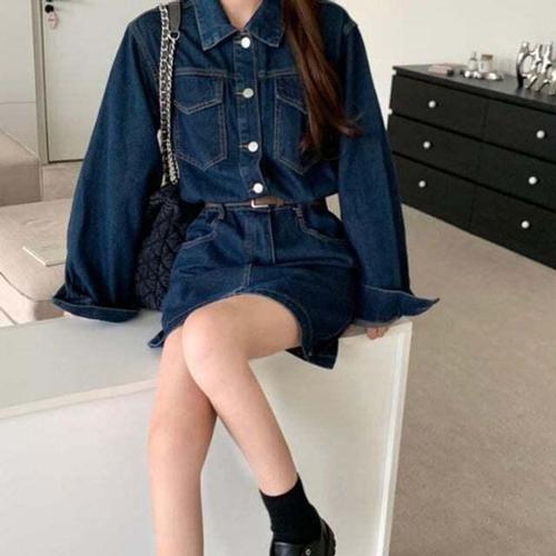 [셀럽하우스]여름 CRRZ8755 봄 스커트 데님 청치마 원피스 빈티지 반소매 미