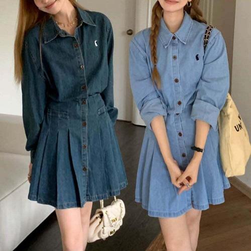 [셀럽하우스]여성 JVSP1884 허리잘록 데님원피스 카라 A라인스커트 청원피스