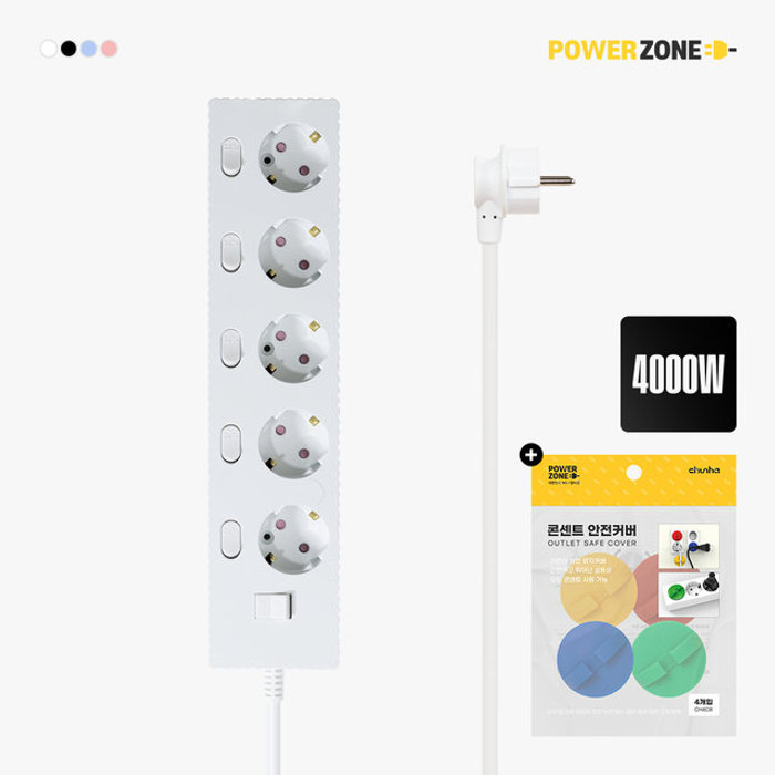 파워존 국산 프리미엄 자동소화 고용량 웨이브 개별스위치 멀티탭 4구 5m