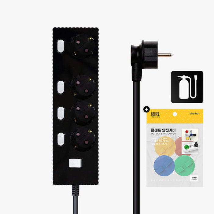 파워존 국산 프리미엄 자동소화 고용량 웨이브 개별스위치 멀티탭 4구 3m