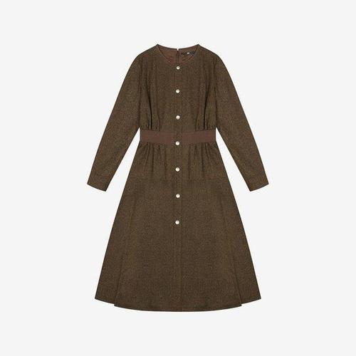 [하이버넷] 웨이스트 셔링 플리츠 원피스 - 그레이