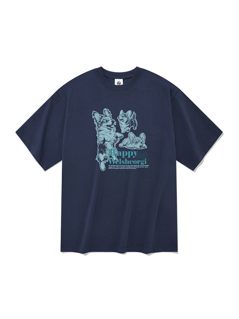 [라디네오] 해피 웰시코기 반팔 티셔츠 네이비