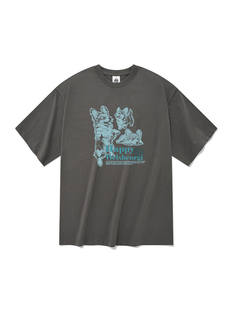 [라디네오] 해피 웰시코기 반팔 티셔츠 그레이