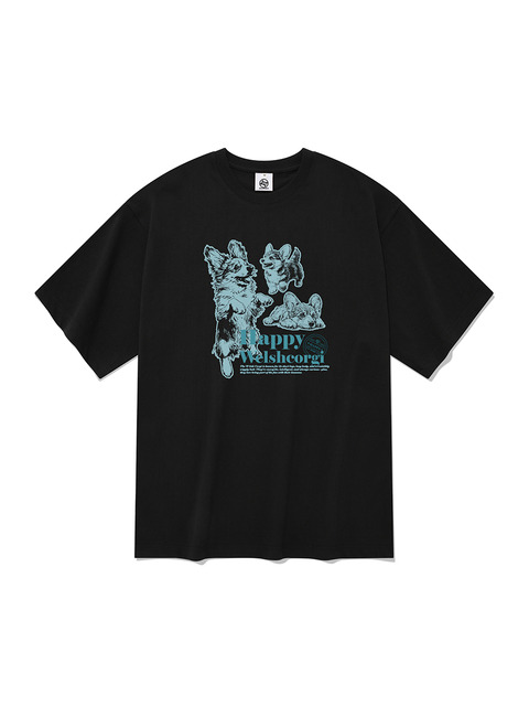 [라디네오] 해피 웰시코기 반팔 티셔츠 블랙