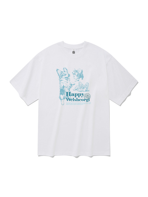[라디네오] 해피 웰시코기 반팔 티셔츠 화이트