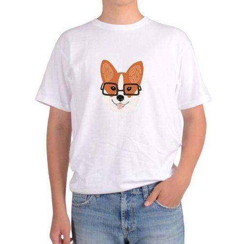 [에이치플러스몰]반팔 라운드티 웰시코기 안경 강아지 dog