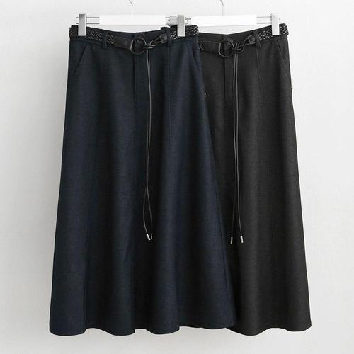 [옷자락]여성용 데님 롱스커트 절개 플레어 벨트스트랩 위빙 디자인