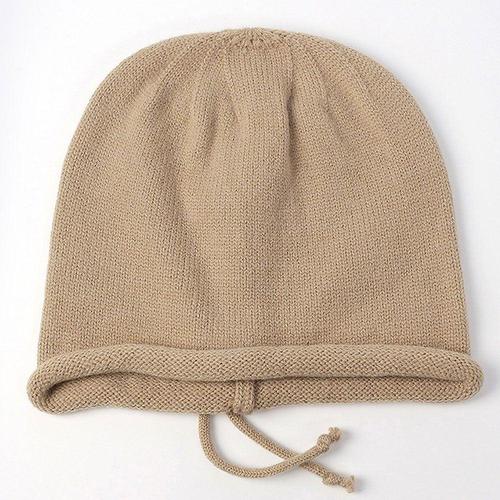 브라운 롤업 스트링 니트 비니 유니크 캐주얼 패션 모자 WFKOQC7
