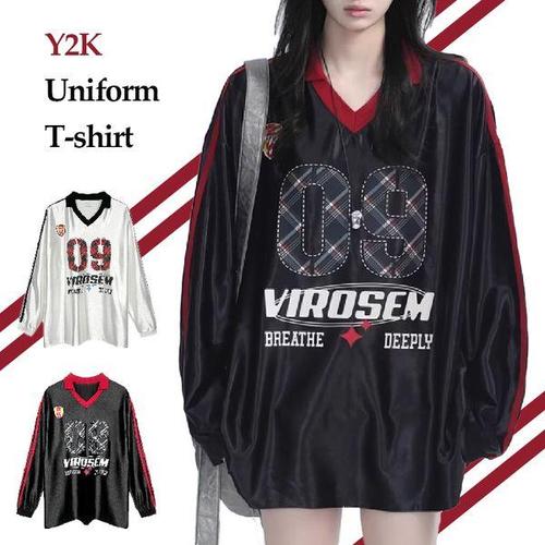 [에어플레인][A.I.P] Y2K 걸스 09 트랙 유니폼 긴팔티셔츠(2color)
