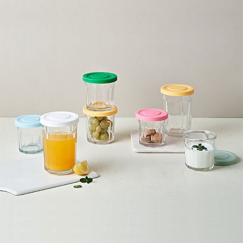 헥사 얌얌 실리콘뚜껑 유리병 원형 이유식 밀폐용기 150ml SG150 6컬러 세트