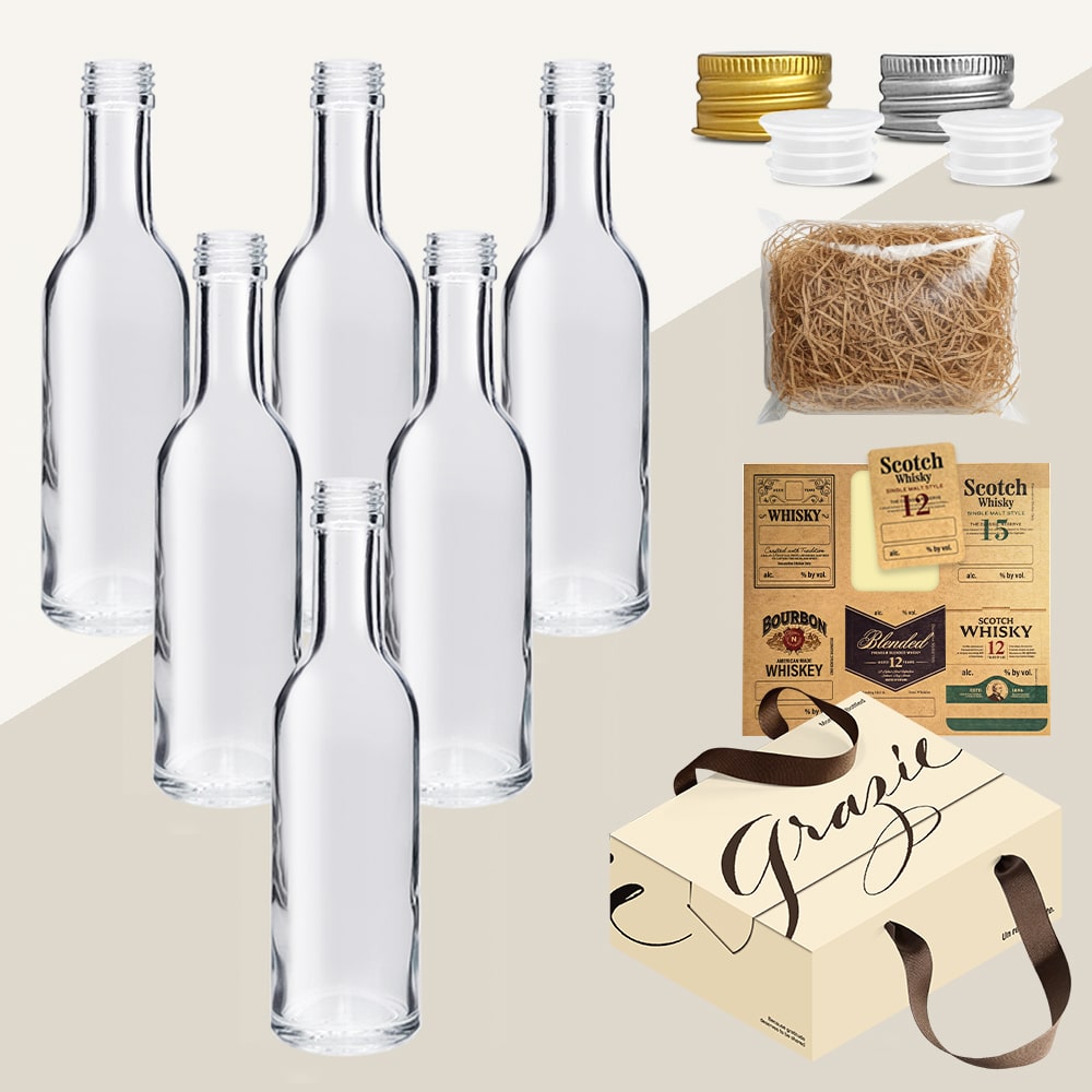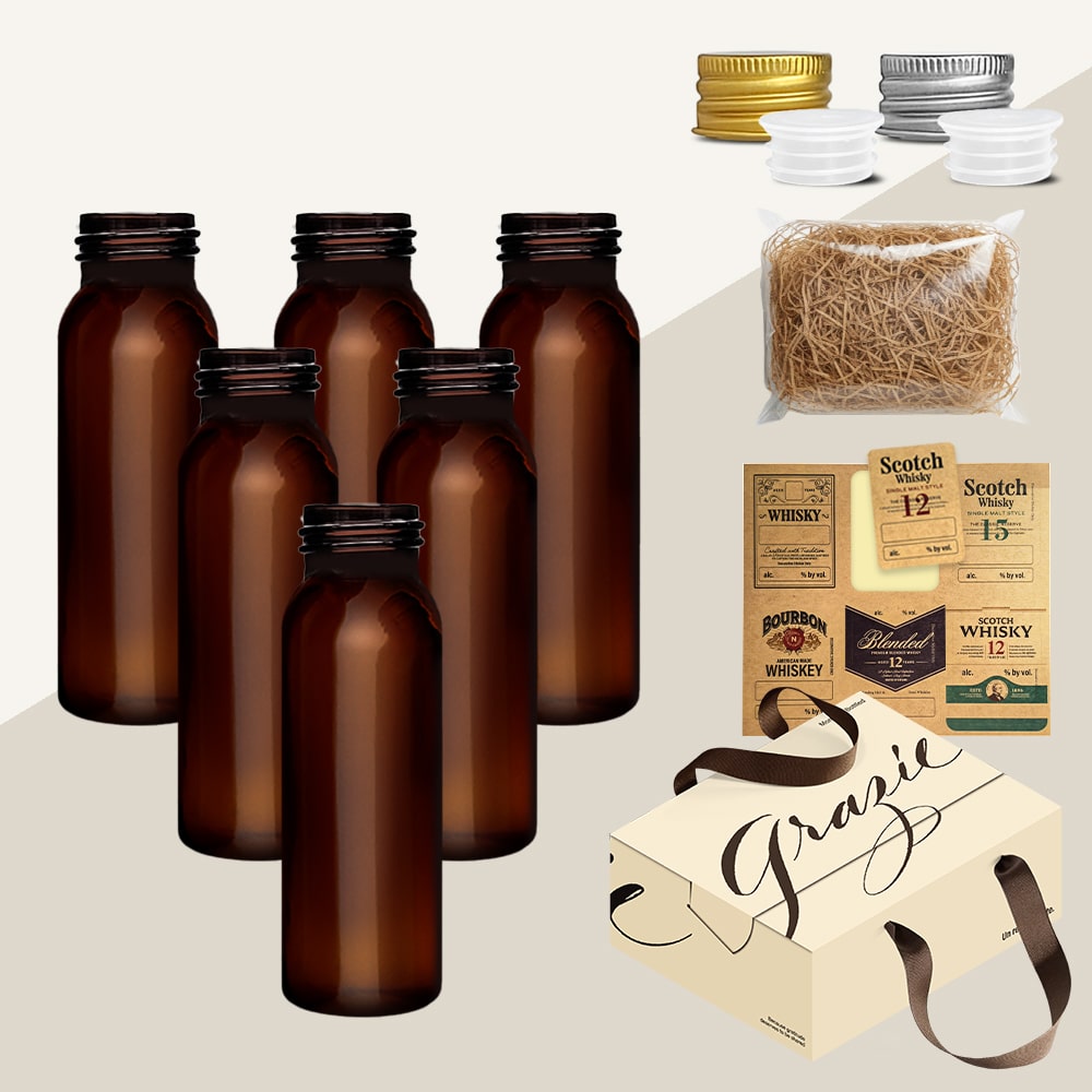 위스키 키트 바이알 유리병 D형 125ml FN125D 6종 세트 선물박스 스티커