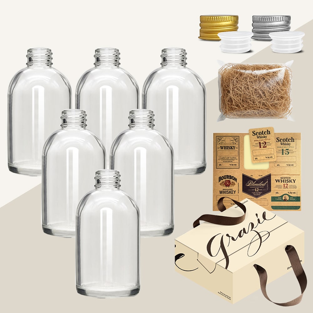 위스키 키트 바이알 유리병 둥근사각 100ml 6종 세트 선물박스 스티커 올인원