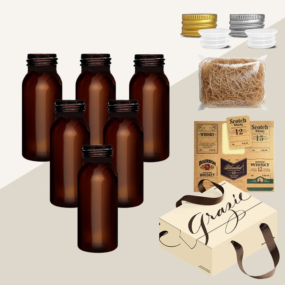 위스키 키트 바이알 유리병 갈색 50ml SBB50 6종 세트 선물박스 스티커 올인원