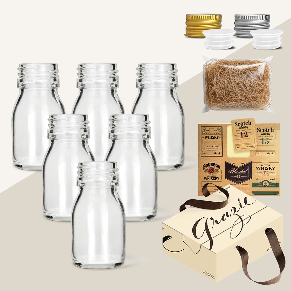 위스키 키트 바이알 유리병 투명 50ml SB50 6종 세트 선물박스 스티커 올인원