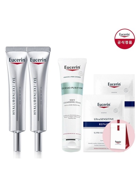 [유세린] 유세린 하이알루론 3X 아이크림 15ml 트리플팩 [증정]더모퓨리파이어 클렌징 폼 150g + 울센마스크팩 2매 + 리본선물상자