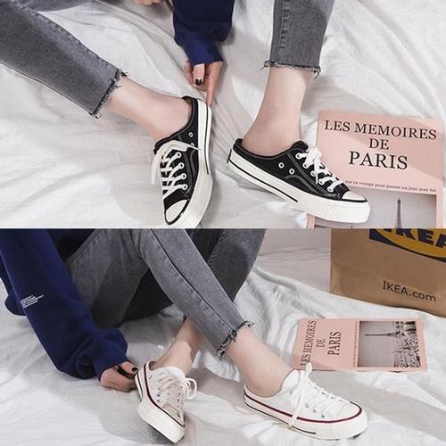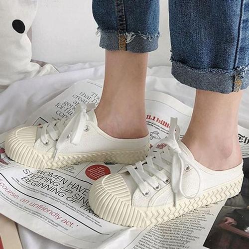 [S2ZYWBB]캔버스화 뮬 스니커즈 온 단화 4색