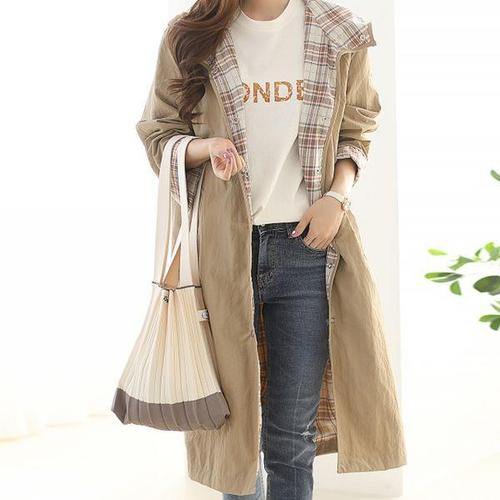 [루시다]선데이2 체크후디 트렌치코트